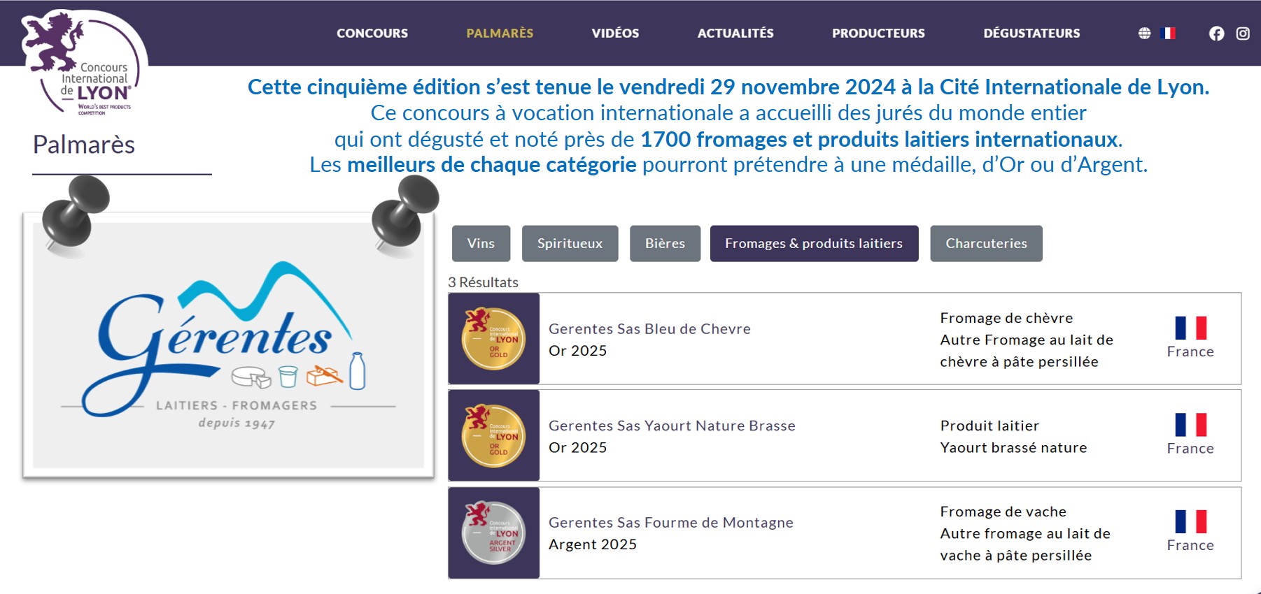 Laiterie Gerentes au @concoursdelyon qui récompense les meilleurs produits de leur catégorie. Parmi les 1700 échantillons fromages et produits laitiers :